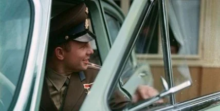 Середина 60-х. Гагарин отучился в автошколе и получил права, потому что ему по возвращении надарили машин.