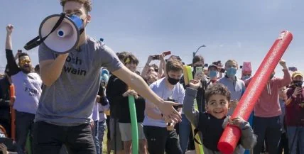 Но оно состоялось, мало того, на "сражение" пришли сотни человек, вооруженные лапшой для бассейна. Также посмотреть на сражение пришли множество людей в футболках и плакатами с надписями "команда Джоша", "я с Джошем", "вперед Джош" и другими.