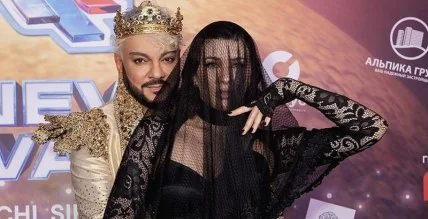 54-летний певец облачился в золотистую тунику и венок. Так же MARUV не изменила своему вкусу — для образа исполнительница выбрала чулки, корсет, каблуки.