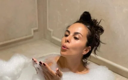 Певица обложилась пеной, скрыв интимные места, но все же было видно, что Настя позирует топлес.