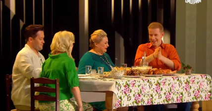 Так, в 2020-м году "95 квартал" выпустил юмористический номер с комиком Юрием Ткачом и певицей Jerry Heil о веганах. По сюжету номера парень приводит девушку-веганку знакомиться с отцом, который является большим поклонником мясной пищи. Молодой человек отмечает, что и он сам тоже веган. В выпуске "Шоу большой страны", который вышел лишь в сентябре этого года, завязка точно такая же: парень приводит свою подругу знакомиться с родителями, объявив, что они оба веганы.