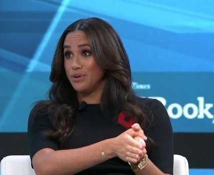 Во время интервью для New York Times Меган была одета во все черное. Ее платье украшал красный мак памяти.