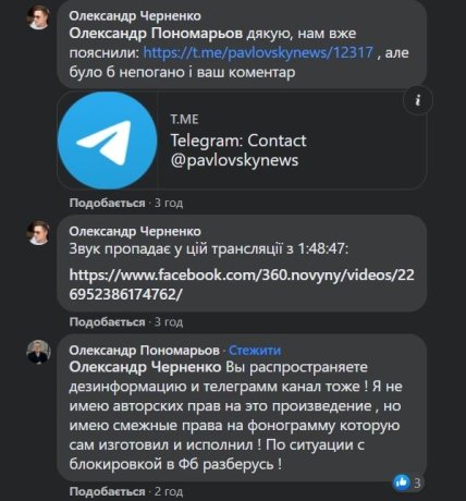 В комментариях Алесандр Пономарев отметил, что у него есть смежные права на фонограмму и пообещал разобраться с блокировкой в Фейсбуке.