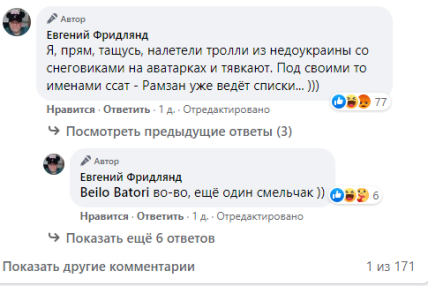 Естественно, что пост вызвал гневную реакцию пользователей сети. Комментаторы отметили, что пост является милитаристским и ксенофобским и выразили удивление, почему Фридлянда все еще не вызвали в прокуратуру РФ. Ему также посоветовали молчать и не писать подобный бред. При этом сам экс-продюсер назвал всех, кто оставил подобные комментарии "троллями из недоУкраины".