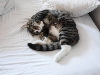 Как и все живые существа на планете, кошки нуждаются в регулярном отдыхе и сне. Правда, у них его куда больше, чем у человека. Они часто спят в разных местах, но нередко пытаются "потеснить" хозяина.