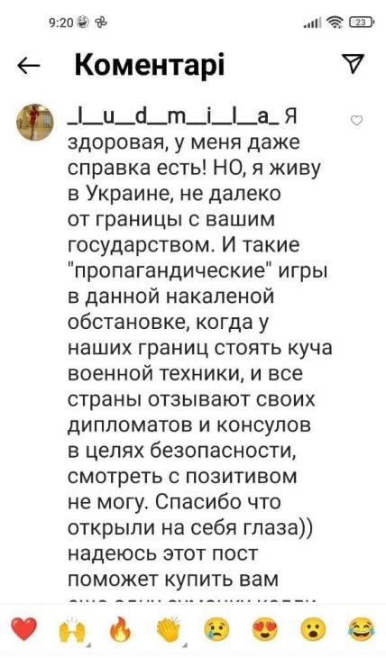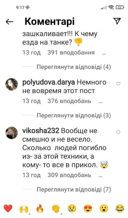 В комментариях к посту отписали, что в нынешней напряженной ситуации с Украиной снимки выглядят издевательски: "Не смешно", "неуместно", "разочаровали", "не в нынешнее время такие фото делать".