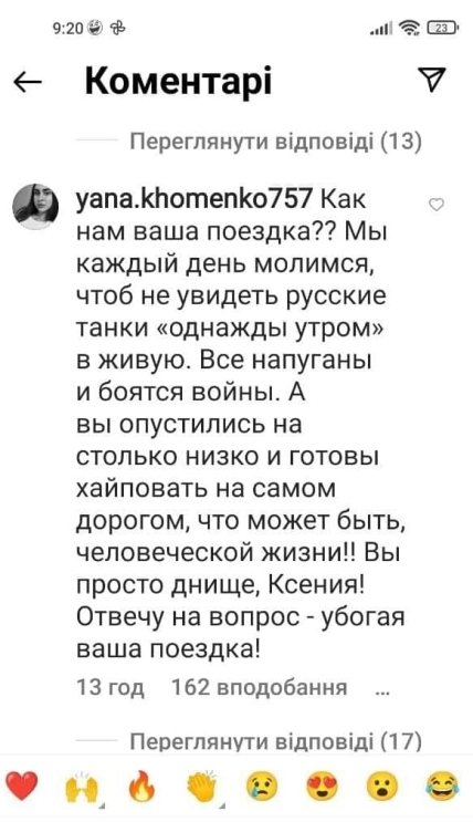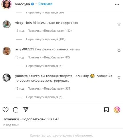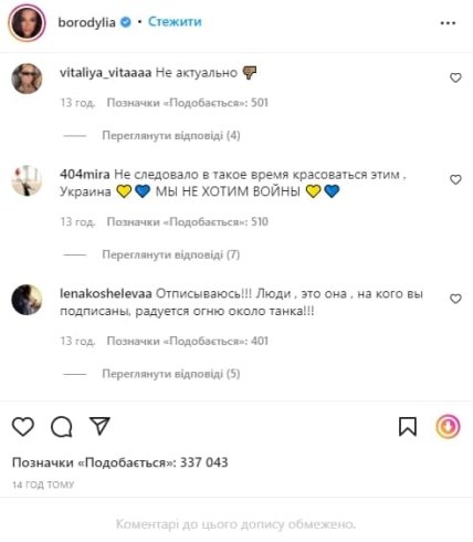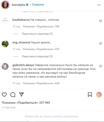 Недолго российской звезде пришлось ждать ответной реакции. Бородина получила в свой адрес шквал возмущенных комментариев. Пользователи заявили, что подобные фото в нынешнее время совершенно неуместны, особенно когда есть велика вероятность вторжения российской военной техники на территорию Украины.