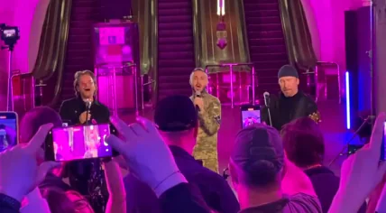Украинская музыка запомнит этот год фантастическими коллаборациями наших и мировых звезд. В воскресенье, 8 мая, знаменитые музыканты Боно и Эдж из ирландской группы U2 выступают на станции метро "Хрещатик". К ним присоединился и солист группы "Антитела" Тарас Тополя, который сейчас защищает Украину в рядах ВСУ.