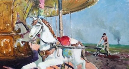 Свои картины он называет ироническими, проблемными и наталкивающими на размышления.