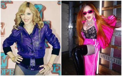 Исполнительница, полное имя которой Мадонна Луиза Чикконе, прославилась в 1980-х благодаря таким хитам, как Like A Virgin и True Blue. Ее популярность нарастала с каждым хитом, будь то La Isla Bonita, Hung Up, 4 Minutes или Frozen. Мадонна была звездой в стиле тех лет, часто носила кружева, всевозможные сетки и аксессуары с крестами. Один из памятных образов артистки – вьющиеся волосы оттенка блонд, черная подводка для глаз и красная помада. Но в последние годы Мадонна отошла от своей классики: красит волосы в яркие тона или осветляет полностью брови. Очень заметные скулы и пухлые губы порой не дают распознать в лице ту самую поп-икону 90-х. Певица часто делится провакацтивными видео у себя в Instagram.