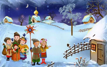 На Рождество украинцы традиционно поют колядки. Это величественные обрядовые рождественские песни, которые могут исполнять как взрослые, так и дети. Конечно, для детей колядки должны быть простыми и понятными.