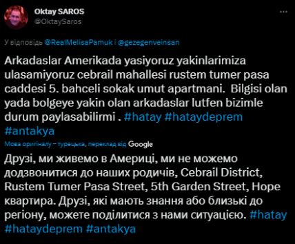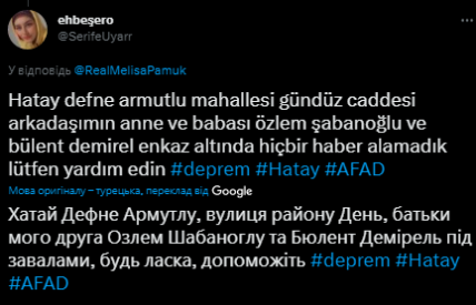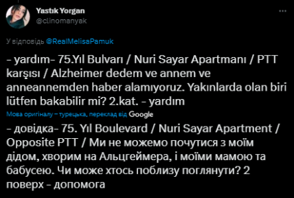 "Мы не знаем, как там квартира, есть ли кто-нибудь в районе, кто может помочь?", — обращается в соцсети Памук. Пост звезды просмотрели более 2 миллионов человек, в комментариях пользователи также обращаются с помощью узнать какую-то информацию об их родственниках и друзьях.