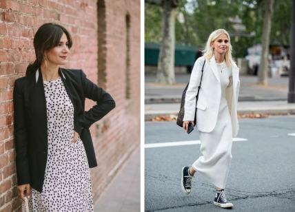 Еще одна вещь, которая поможет компенсировать лишний объем – прямое платье силуэта "колонна" длины миди или даже макси. Оно создаст дополнительную вертикаль, вокруг которой будет строиться весь силуэт. Чтобы закрепить результат, добавьте обувь на высоком каблуке: туфли, мюли, ботильоны или сапоги.