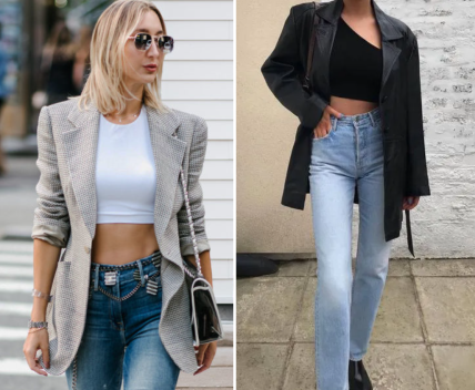 Еще один способ визуально обозначить талию – надеть под объемный жакет джинсы с высокой посадкой и укороченный топ или рубашку. Так ваш силуэт будет гармоничным и сбалансированным.