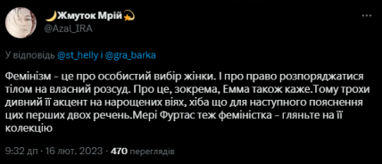 "Пока миллениалки колят себе губки и ламинируют ресницы, то уже, например, зумерки, ровесницы блогерши Полины Майко, редко даже тонируют кожу. Все меняется, да, это движение. Женщин объективируют, это большие претензии, запросы, нагрузка к нашей внешности. Мы с этим боремся. Я хоть и сама наращиваю ресницы, но я сделаю все, если у меня будет дочь, чтобы она жила в обществе, где ей на**р это не нужно будет", — сказала Емма Антонюк.