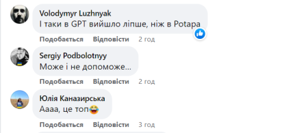 В комментариях пользователи фейсбука заценили текст, написанный ИИ (искусственным интеллектом — ред.), отметив, что "получилось даже лучше, чем у Потапа":
