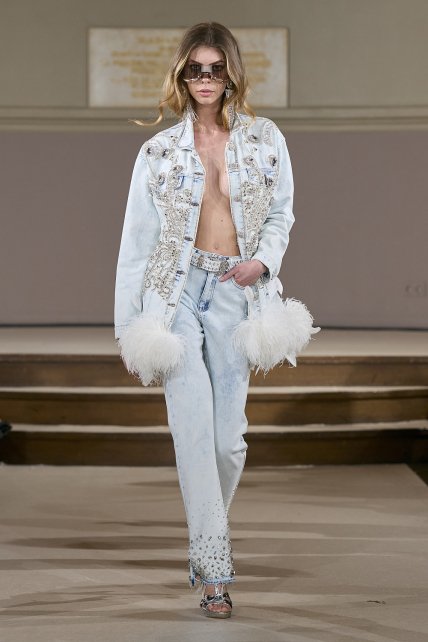 Именитые дизайнеры предлагают носить декорированные джинсы в паре с такими же рубашками или топами. Но на самом деле это очень смелое решение и стоит быть очень осторожными, подбирая себе такой аутфит, чтобы не выглядеть глупо.