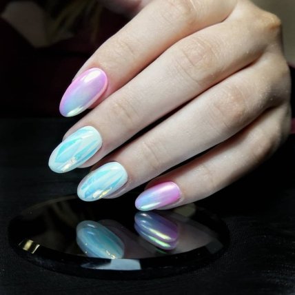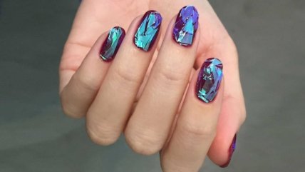 Эффект битого стекла подходит обладательницам как длинных, так и коротких ногтей любой формы — его можно стилизовать буквально под все