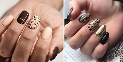 Такой маникюр подойдет на каждый день. Трендовый анималистический принт хорошо сочетается, например, с розовыми пастельными оттенками и нюдом.