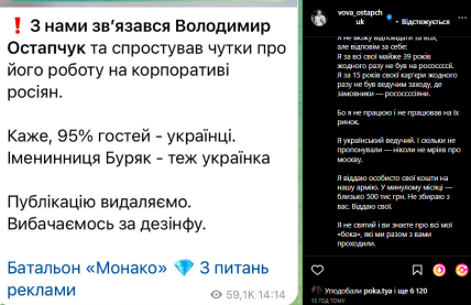 Возникла и реакция самого ведущего. По словам Остапчука, на видео именно он, но шоумен не знал о российском олигархе (якобы Юлия Буряк сейчас замужем за украинцем по имени Андрей) и гостей-россиян, потому что так бы отказался от работы. Остапчук обвинил во всем своего менеджера, с которым сотрудничал не один год.