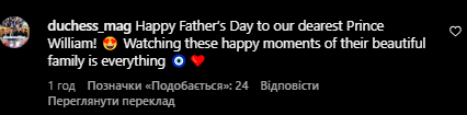 "Поздравляем нашего дорогого принца Уильяма с Днем отца! Наблюдать за этими счастливыми моментами их прекрасной семьи – это все", "Поздравляем принца Уэльского, отца принца Джорджа, принцессы Шарлотты и принца Луи с Днем отца. Отличные фотографии!", — пишут в комментариях британцы.