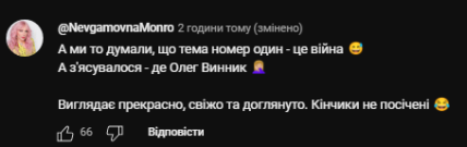В сети поклонники певца поблагодарили его за откровенность, однако некоторые не поверили в искренность исполнителя хита "Вовчиця". Так, в Телеграм-канале "Культурна Прачечна" отметили, что интервью с Олегом Винником это "37 минут воды". Обратили внимание и на то, что сам певец тоже не показывал, сколько донатил на ВСУ.