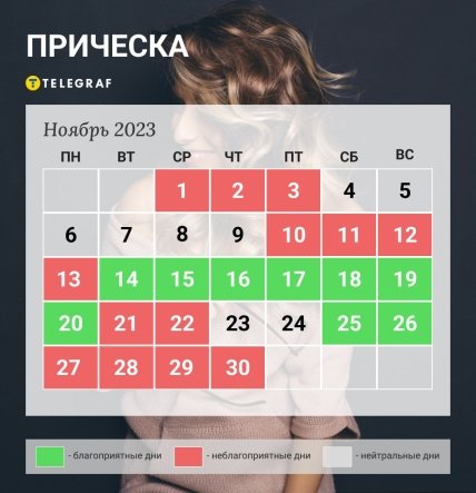 - Удачные дни для того, чтобы подстричь волосы: 16-18 ноября включительно и 25-26 ноября.