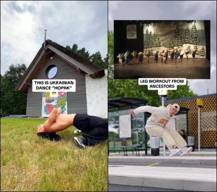 Технику выполнения некоторых элементов танца показал в TikTok всемирно известный украинский брейк-дансер Олег Кузнецов (которого больше знают под псевдонимом Kuzya).