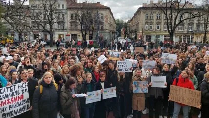 "Геть Фаріон": львовские студенты массово вышли против скандальной преподавательницы (фото и видео)