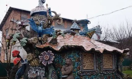 Внимание проезжающих приковывают необычные скульптуры пары местных мастеров. Во дворе семьи Котиков оживают сказочные миры и фантастические существа.