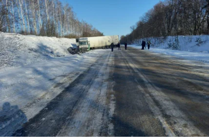 Фура буквально столкнула легковушку на обочину дороги, откуда та свалилась в кювет