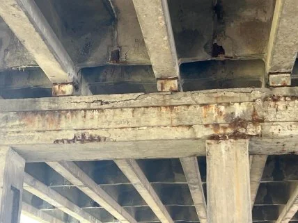 В частности, эксперты "ГосдорНИИ" зафиксировали коррозию рабочей арматуры в пролетных строениях и ригелях на путепроводе в Житомире, который построили 66 лет назад, а последняя реконструкция состоялась в 1977 году. Стойки опор имеют продольные трещины, отслойку разрушенного бетона, оголенную и ржавую арматуру, говорится в сообщении.