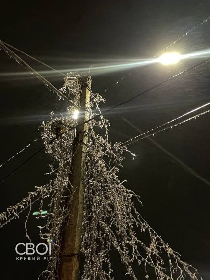 В Кривом Роге с вечера воскресенья, 7 января, как и прогнозировали синоптики, свирепствует ненастье. Город покрыл дождь, который сразу превратился в лед. В сочетании с сильным ветром это наделало беды и оставило горожан без электричества.