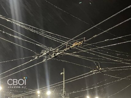 Отмечается, что троллейбусы и трамваи не работают из-за оледенения троллей, а скоростной транспорт работает частично. Тем не менее автобусы, маршрутки и дизель-генераторные троллейбусы в работе.