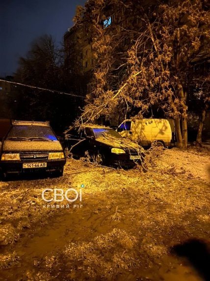 Кривой Рог обледенел из-за непогоды: в городе повалены деревья, изменено движение общественного транспорта (фото, видео)