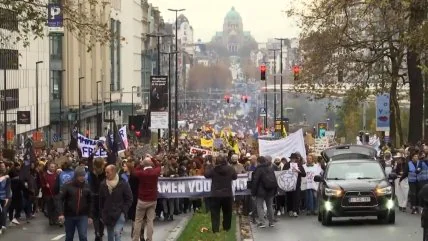 В столице Бельгии Брюсселе в воскресенье, 23 января, прошли массовые демонстрации против новых ограничений, принятых с целью недопущения распространения коронавирусной инфекции COVID-19.