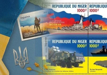 Популярность украинской почтовой марки с пущенным на дно российским флагманом "Москва" не дает покоя почтам других стран. Так, флешмоб с изготовлением подобной филателии решили поддержать в западной Африке. Марка "Горящая "Москва" вышла в печать на территории Республики Нигер.