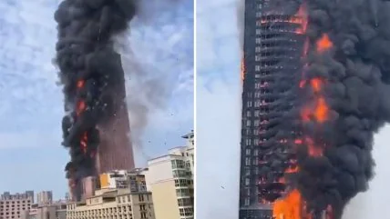 В Китае за считанные минуты выгорел небоскреб: ситуация с жертвами загадочная (видео)