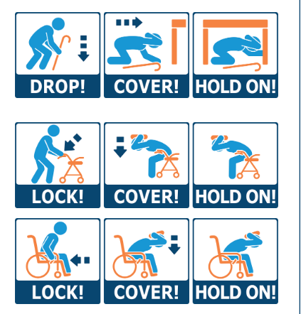 В США алгоритм действий в помещении во время землетрясения состоит из трех простых шагов: "Падай. Прячься. Держись":