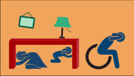- Где и как прятаться: положите одну руку на голову и шею, чтобы защитить их от мусора и направляйтесь к столу, чтобы укрыться под ним.