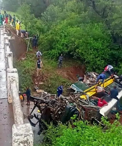 Об этом сообщают парамедики ER24, прибывшие на место вместе с провинциальными спасателями и другими службами помощи. Столкновение было лобовым, после чего автобус упал с автострады в реку и приземлился на левый бок.