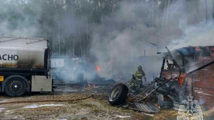 В результате этого 3 бензовоза сгорели. Также от огня пострадало бытовое помещение, а после ликвидации пожара продолжали гореть шины.