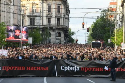 Как сообщает N1 info по оценкам полиции, на улицах Белграда собралось более 50 тысяч человек. Протесты прошли и в других городах — Крагуеваци, Валево и т.д.