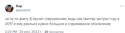 К слову, в социальных сетях совсем не оценили изменений, от которых сам Илон Маск в восторге. Пользователи этой социальной сети в комментариях отметили, что значок синей птички был узнаваемым и привычным каждому, а потому не стоило его менять. И лишь единицы написали, что новый логотип действительно выглядит современнее и обновление "Твиттеру" все же требовалось.