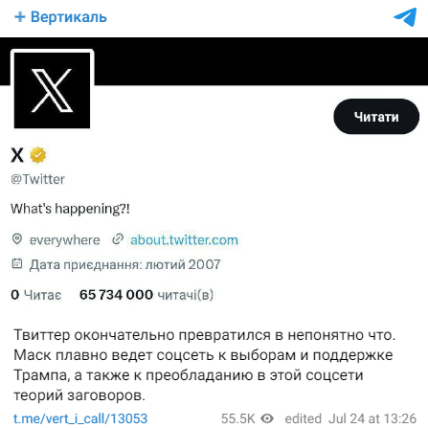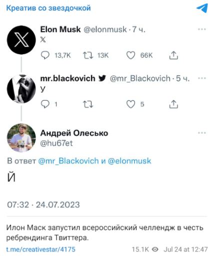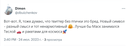 "Скоро мы попрощаемся с брендом Twitter и постепенно, со всеми птичками. "Если сегодня вечером будет опубликован достаточно качественный логотип X, завтра мы опубликуем его по всему миру", — написал 23 июля владелец соцсети.