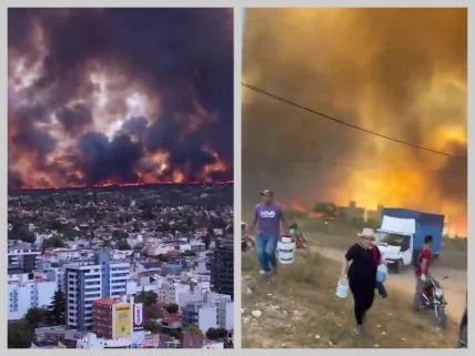 "Уже два месяца стоит засуха. Постоянные порывы ветра, у нас 37 градусов", — рассказала журналистка София Перес, добавив, что люди выскакивают из своих домов только с тем, что могут унести в руках и спешно эвакуируются.