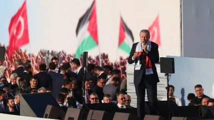 Президент Турции Реджеп Тайип Эрдоган выступил на многотысячном митинге в поддержку Палестины в Стамбуле и жестко раскритиковал Израиль и Запад в целом, а также намекнул на возможность религиозной войны.