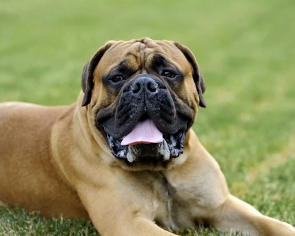 Бультерьер. Порода выведена в Англии XIX века из бульдога, белого английского терьера и далматинца. Был создан для собачьих боев как смелый боец, но не провокатор агрессивных драк. Это мускулистая собака с короткой шерстью, маленькими глубоко посаженными глазами и выпуклой головой. Бультерьер активен, предан и игрив, однако считается одной из сильнейших собак.