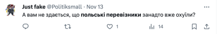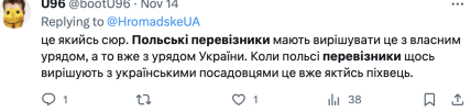 В сети люди выступают против блокады польских перевозчиков, ведь считают, что они играют на том, что Украина находится в состоянии войны. Также многие пользователи указывают на то, что это непосредственно вопрос правительства Украины и Польши.