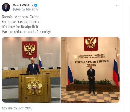 На этом какие-то очевидные положительные моменты заканчиваются, по крайней мере, для Украины. Вилдерс критиковал правительство Рютте за помощь Украине и визиты в Киев, имеет резкую антиукраинскую позицию.